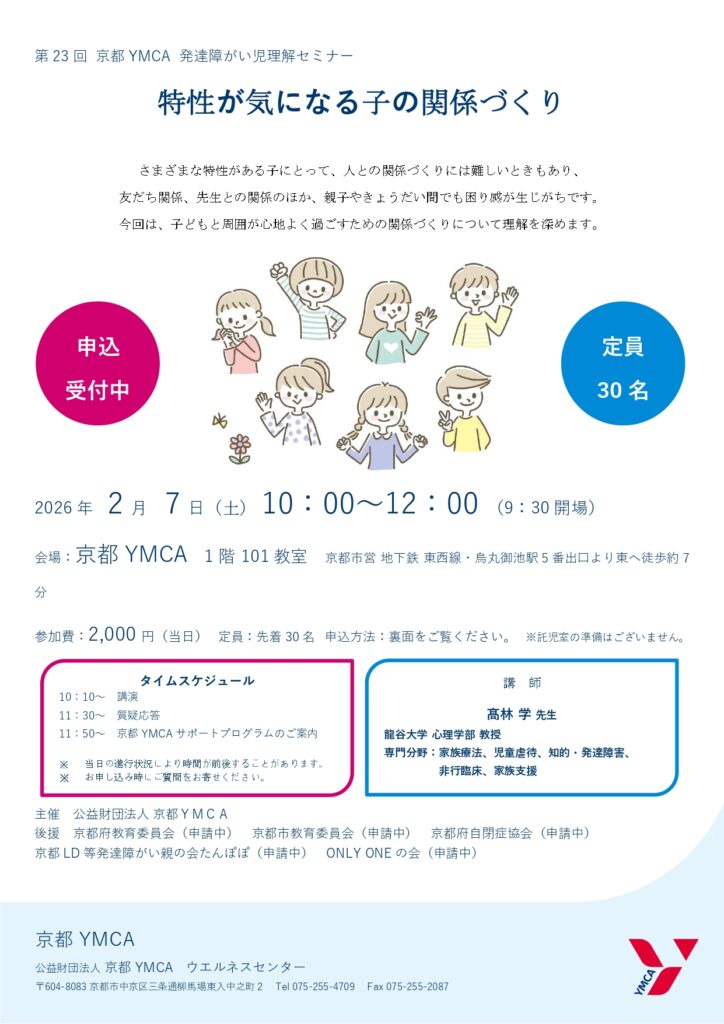 会 場 京都YMCA 1階101教室(京都市営 地下鉄 東西線・烏丸御池駅5番出口より東へ徒歩約7分)